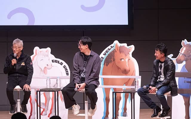 続く質問コーナーでは、ファンから寄せられた質問に3名が回答。「産駒でゴールドシップに1番似ているのは誰ですか?」という質問に今浪氏は「いっぱいいるからね...」と悩みつつ、1番印象に残っている馬としてサトノゴールドを挙げた。「僕が産駒の中で1番最初に触って、お世話した馬。産駒で1番先に勝ったというのが嬉しかった」と思い出を語った。