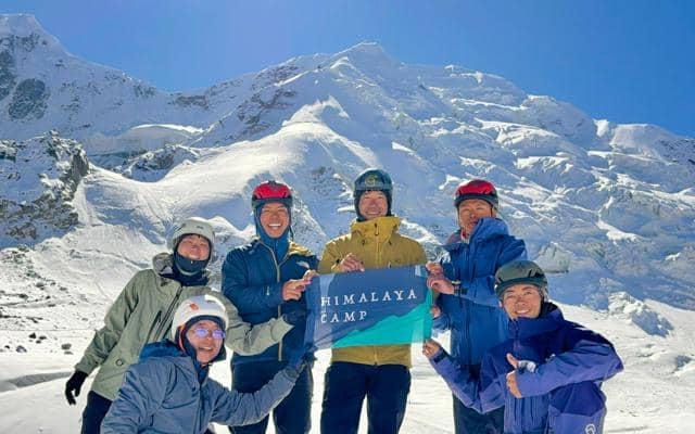 未踏峰のビジョラ・ヒウンチュリ登頂を果たしたヒマラヤキャンプ2025年隊のメンバー=比嘉正岳さん提供