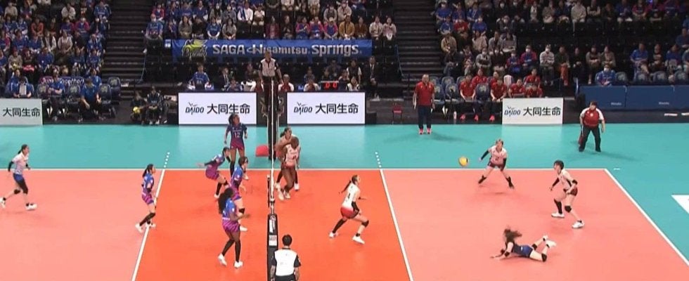 なお、試合は開幕から好調のSAGA久光に後手を踏み、Astemoはセットカウント3―0で敗戦を喫した。(ABEMA de J SPORTS/SVリーグ)