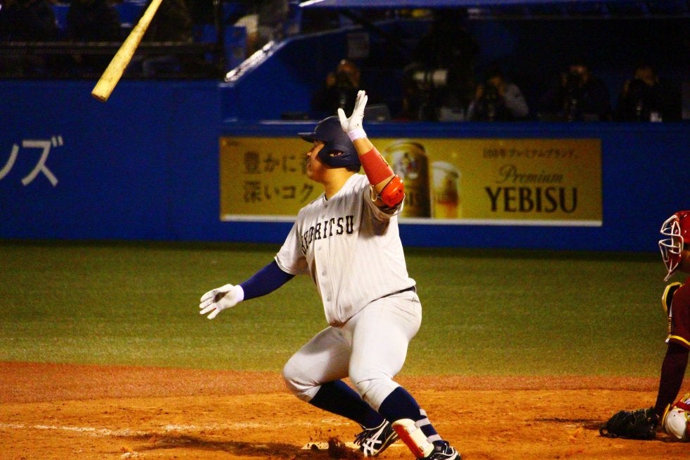 高校通算32本塁打、リーグ戦通算14本塁打の長打力を遺憾なく発揮。卒業後はパナソニックに進む
