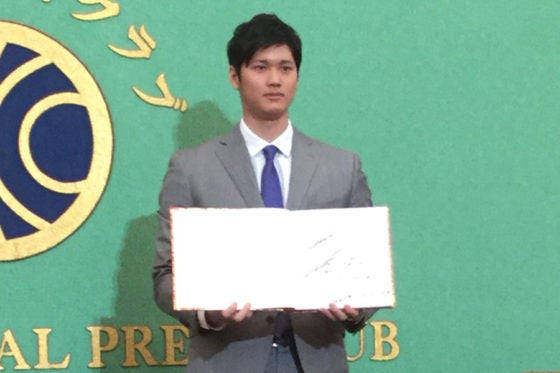 メジャー挑戦が正式決定した日本ハム大谷翔平投手は、11月11日午前11時から日本記者クラブで記者会見を開いた。メジャーでの目標を聞かれ「一番の選手になりたいというのは普通では」と堂々と宣言、あらためて、二刀流でメジャーに挑む強い決意を示した。以下は会見の主な一問一答。
