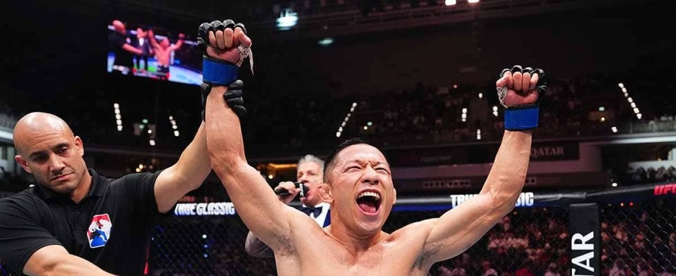 総合格闘家の堀口恭司は22日(日本時間23日)、カタール・ドーハにて開催された「UFCファイトナイト」でフライ級11位のタギル・ウランベコフ(ロシア)と対戦。2016年以来約9年ぶりとなるUFC復帰戦で、3Rリアネイキッドチョークによる一本勝ちを飾った。