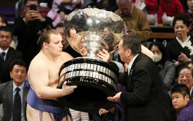 大相撲九州場所(福岡国際センター)千秋楽の23日、優勝力士に与えられる内閣総理大臣杯は、高市早苗首相ではなく、代理とし…