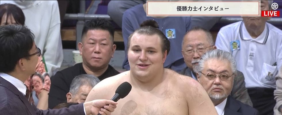 ―初優勝、安青錦関です。おめでとうございます。
