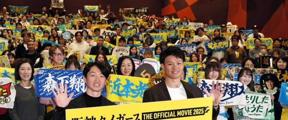 壇上では「連覇したい。個人的にはタイトル一つもとれていないので、近本さん見習ってタイトルをとりたい」と宣言。舞台あいさつを「こういう機会を増やせるように野球で魅せたい」と締めくくった。来季もまた、球場でも銀幕でもトップスターの輝きを放つ。