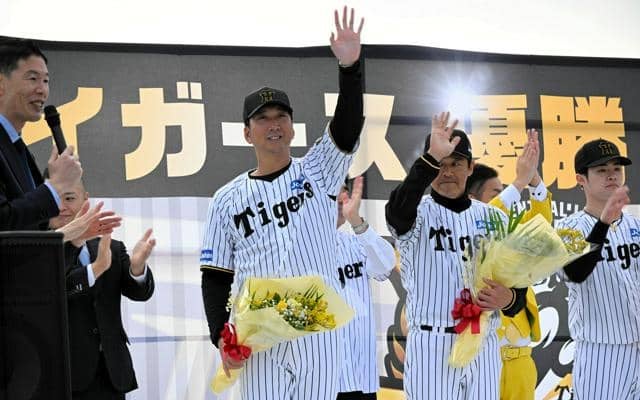 プロ野球・阪神タイガースの本拠地、阪神甲子園球場(兵庫県西宮市)近くの商業施設で25日、市民向けのリーグ優勝報告会が開…