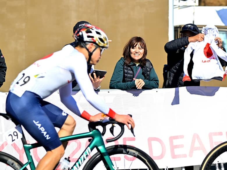 久美さんは、4回目のデフリンピックです。私はパラリンピックに2大会出場しましたが、どんなに自転車に乗るのが好きでも、日本代表になるってすごいプレッシャーなんですよ。私自身、パリ大会は本当に苦しくて苦しくて、最終日に金メダルを獲れて、やっと明るさを取り戻したんですけど。そう考えると、デフリンピックに出続けているって、すごいことです。久美さんはもともと明るくてポジティブな人ですが、本当に尊敬できます。