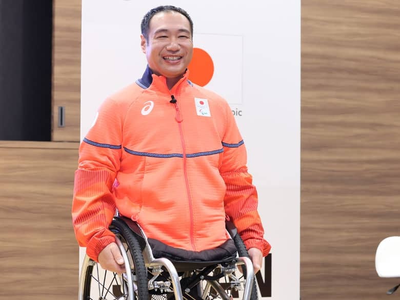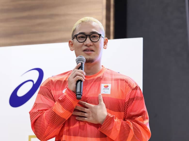 パリを思い出すという宮食宮食は、「改めてすごく闘志が湧く色だなと思います。皆さんもこの色を着てアドレナリン全開で戦っていただけるんじゃないでしょうか。僕は視覚障がいがありますが、この色は目立つので、(応援Tシャツや公式ウエアを着ている人たちが集まっている)観客席を見て、あそこは日本ゾーンだなとわかりました」と、パリ大会を振り返り、色の効用を語った。