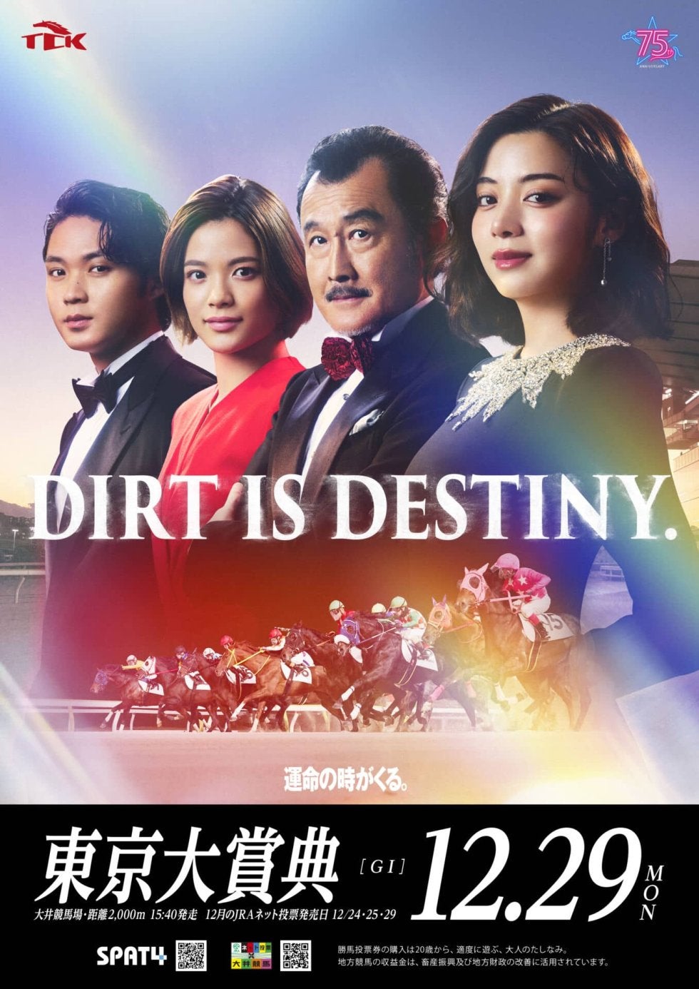 2025年は開場75周年の節目にあたり、TCKは年間テーマを「DIRT IS TCK.」として展開してきた。東京大賞典のレースコピー「DIRT IS DESTINY.」には、地方競馬で唯一の国際G1として、ダート王者を決める“運命のビッグレース”を象徴する意味が込められている。CMでは、池田さんら出演者が凛とした表情で“運命の時”を表現し、これまでの1年の熱い戦いを振り返りつつ、レースへの期待感を高めている。