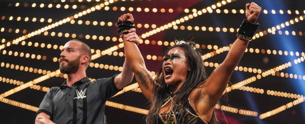 日本時間11月26日に行われたWWEの第3勢力「NXT」にて、WWEの提携団体「TNA」のTNA女子世界ノックアウト王座戦が行われた。試合は現王者でNXTに所属するケラーニ・ジョーダンとジョーディン・グレース、そしてTNAに所属するレイ・イン・リーがトリプルスレットマッチで激突した。