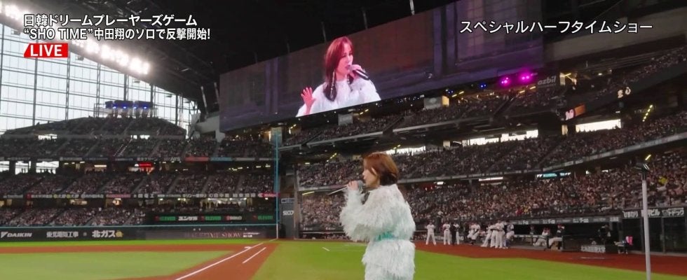 11月30日、日韓ドリームプレーヤーズゲーム2025 supported by DAISOが開催された。7イニング制で行われる試合は、4回を終えたところで小休止。フィールドには、90年代から2000年代の音楽シーンで活躍した相川七瀬が登場。5thシングルでミリオンセラーとなった『恋心』を熱唱した。