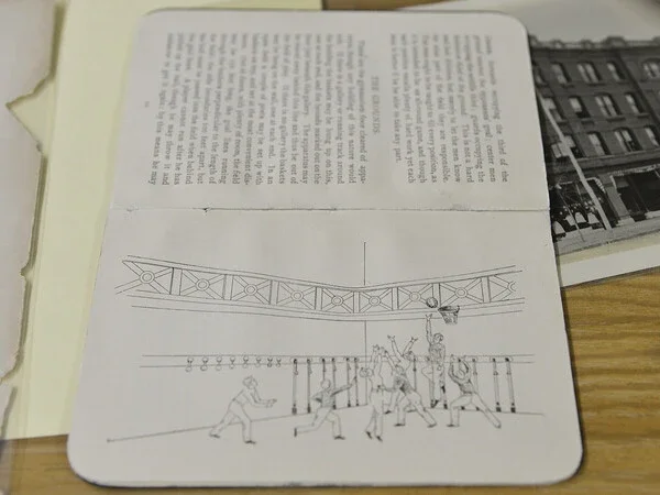 石川は絵の才能があったようで、バスケットボールの試合のスケッチを書き残した。このスケッチは、バスケットボールが誕生した当時の様子を伝える数少ないビジュアル資料で、モンソーさんが見せてくれた複数の古書にも掲載されていた。