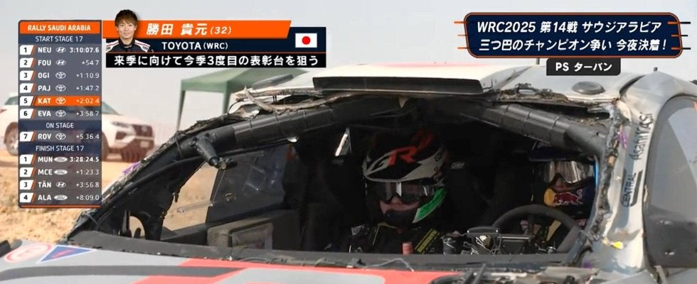 走行後のインタビューでは、「非常にタフだったことは否めませんが、これもラリーですね」とコメントを残している。手負いのマシンながら、最終的にパワーステージで5位を獲得した勝田。ラリー・サウジアラビア全体でも総合5位となり、ファンに来季への期待を抱かせている。(ABEMA『WRC 世界ラリー選手権 2025』/(C)WRC)