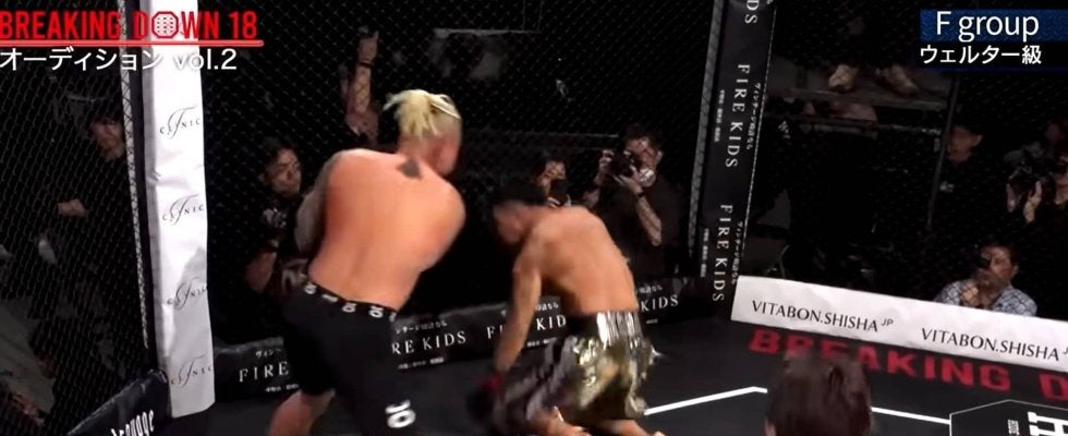 ブレイキングダウン初期からオーディションに参加し続けるもなぜか“試合に出られない”陰の実力者が、元ボクシング全日本新人王の実力者を衝撃KO。思わぬ結末に朝倉未来が驚きとともに大喜びする事態となった。