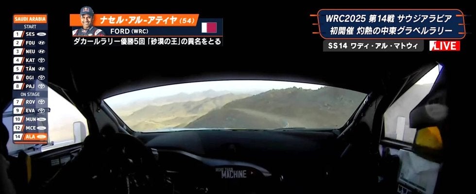 なおアル・アティヤは、競技3日目終了時点で総合9番手とベスト10圏内をキープしている。最終日に順位を落としたが、総合15位でフィニッシュした。(ABEMA『WRC 世界ラリー選手権 2025』/(C)WRC)