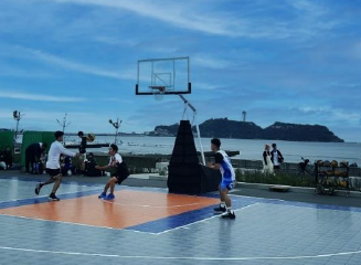 藤沢市立鵠沼海浜公園[HUG-RIDE PARK]駐車場では、湘南の象徴、江の島をバックに設置される特設コートで、3×3のトップチーム同士によるエキシビジョンマッチやU-15交流戦が開催されている。