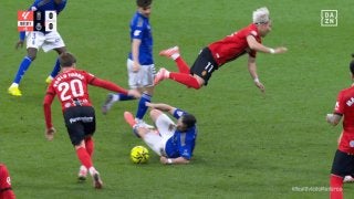 このプレーに主審は、すぐにホイッスルを鳴らしてプレーを止める。敵地は大きなどよめきが起こったが、このタイミングではカードは提示されず、マジョルカ・ボールでの再開が指示されていた。