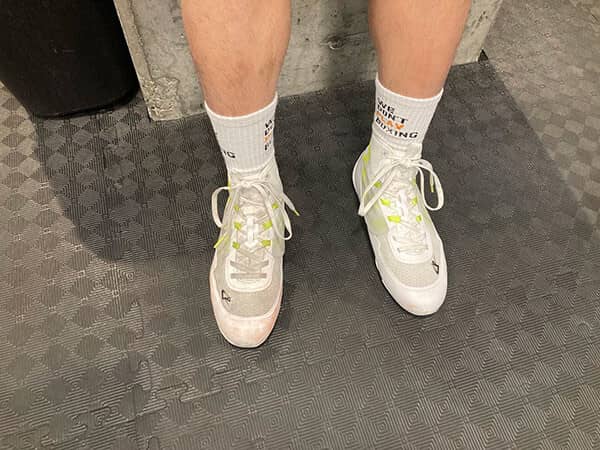 24日前におろした中谷潤人の白いリングシューズは、右だけが黒く変色していた。足元を見つめながら、4階級制覇を目指すサウスポーは微笑んだ。