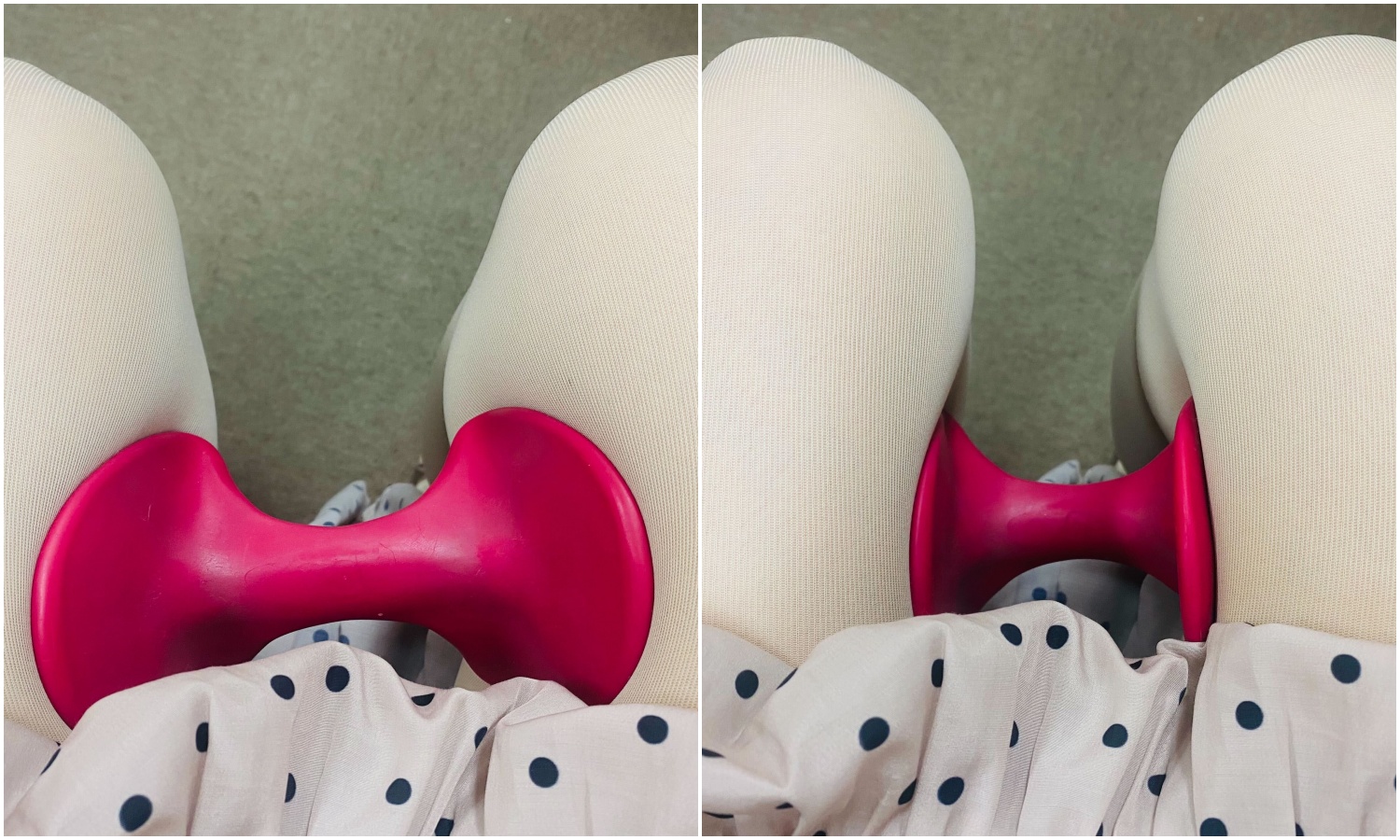 イスに座り、膝にクッションやボールを挟んで軽く押しつぶします。姿勢をまっすぐ保ち、内ももに力が入る感覚をつかむのがポイントです。