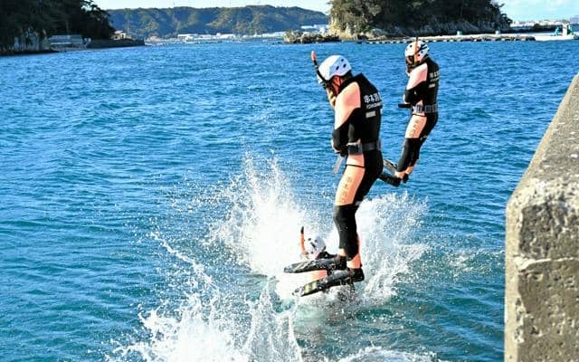 和歌山県串本町消防本部潜水隊の遠泳訓練が12日、同町であった。潜水隊の冬の恒例行事で、20代から30代の隊員4人と入隊希望者2人が1・8キロを泳ぎ切った。