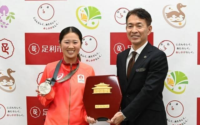 11月にあった聴覚障害者の国際スポーツ大会「デフリンピック東京大会」のサッカー女子で銀メダルを獲得した日本代表の増田香音(かのん)選手(22)=栃木県足利市=が、市スポーツ特別賞を受賞した。10日に市役所であった贈呈式で、増田選手は「サッカーで初めてのメダルを取ることができてうれしい」と笑顔を見せた。