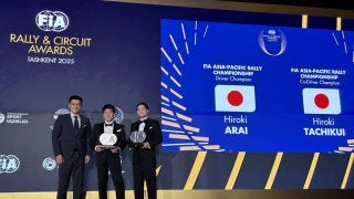 FIA表彰式で2025年APRCチャンピオンの新井大輝と立久井大輝にトロフィー授与