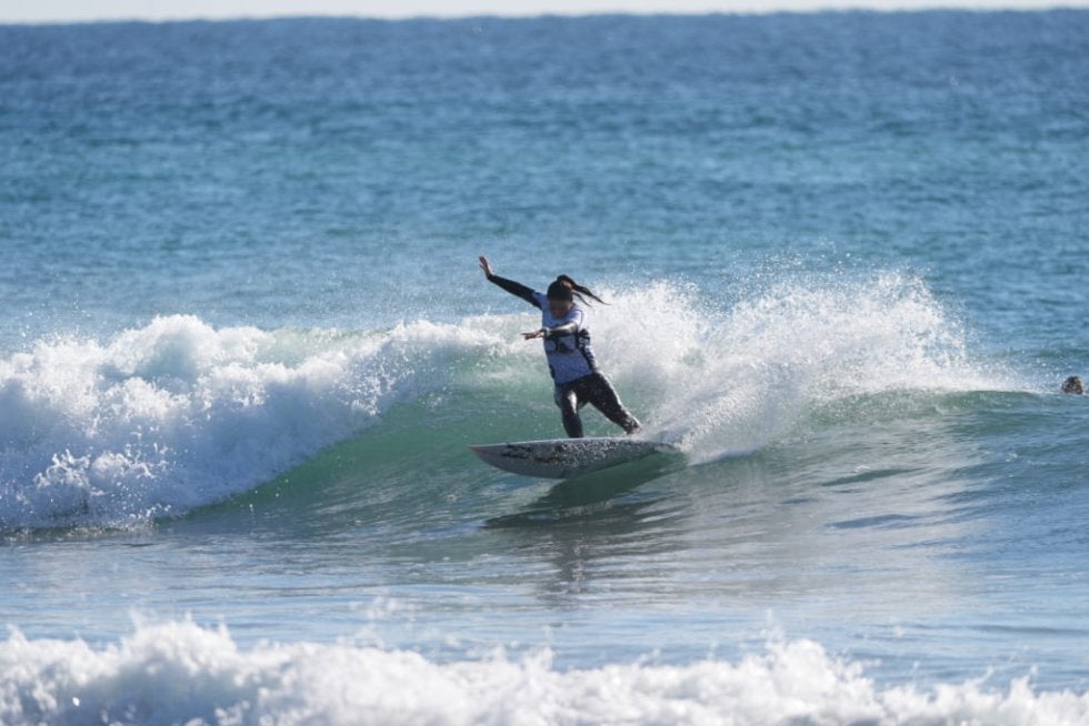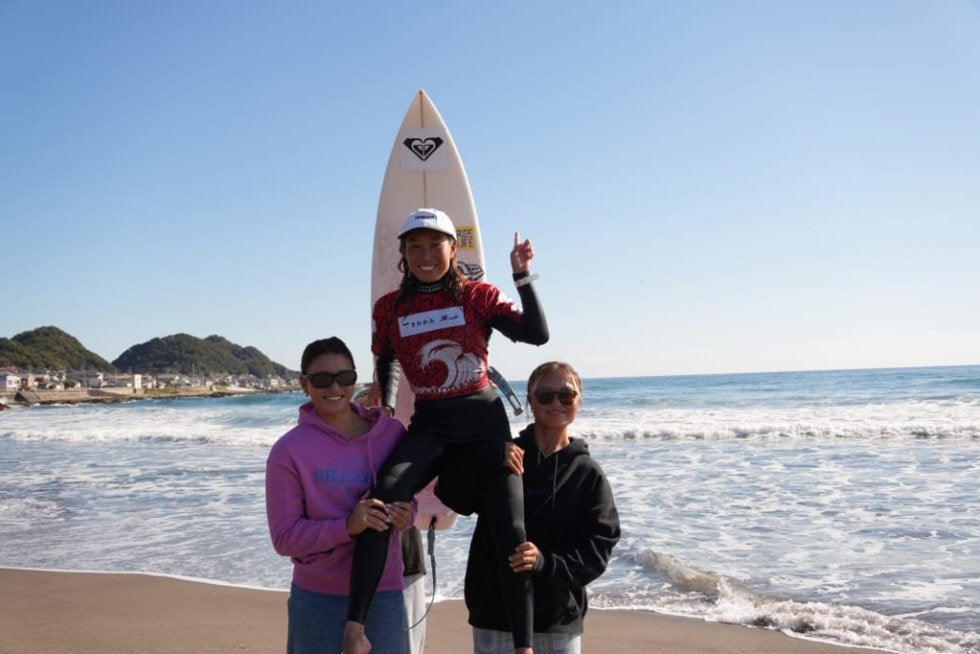 残り時間も少なくなる中、中塩佳那は来た波に挑んだが、スコアは4.30ポイント。ニードを詰めるには至らなかった。最後まで集中力を切らさず、2本をしっかりとまとめ切った野中美波が、見事優勝を飾った。