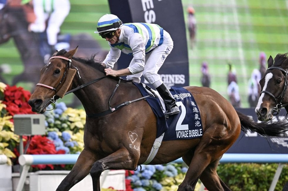 現地時間12月14日、香港・シャティン競馬場で行われた第7R・香港マイル(G1・3歳上・芝1600m・1着賞金2016万香港ドル=約4億円)でZ.パートン騎乗、ヴォイッジバブル(せん7・P.イウ)が勝利した。2着に日本馬のソウルラッシュ(牡7・栗東・池江泰寿)、3着にレッドライオン(せん6・J.サイズ)が入った。勝ちタイムは1:33.47(良)。