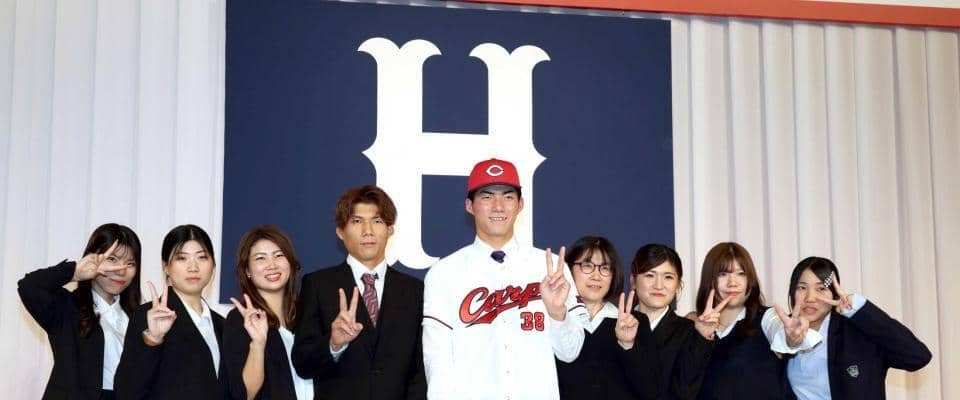 広島は15日、広島市内のホテルで育成を含む新人9選手の入団発表会見を行った。