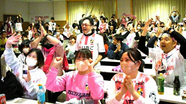 この日のテゲバジャーロはリーグ得点王の橋本啓吾選手を体調不良で欠いたが、地元のサポーターたちは意気軒高と観戦に臨んだ。PV会場は新富町や綾町などにも設けられた。宮崎市の宮崎公立大会場には約350人が集まった。