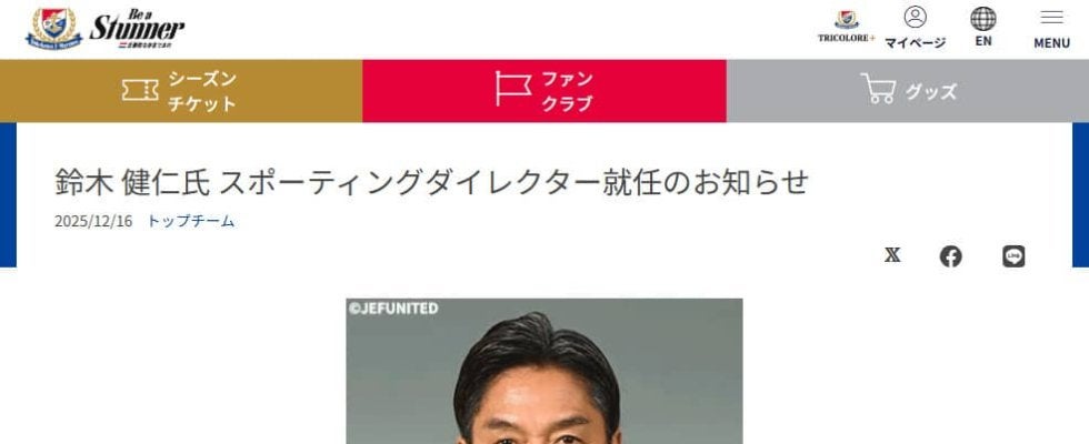 鈴木氏は横浜のOBで、J1復帰を果たしたジェフユナイテッド市原・千葉のジェネラルマネジャーを今季まで務めていた。
