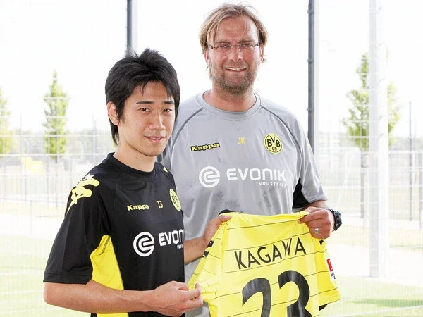 2010年にユルゲン・クロップ監督(右)が率いたボルシア・ドルトムントに約4000万円で移籍し、即座に大活躍した香川真司