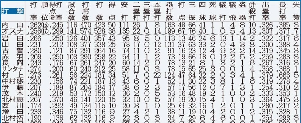 プロ野球の快記録や珍しい記録からシーズンを振り返る「データで見る2025ペナント」。プロ野球を球団別に連載します。第2回はヤクルト編。2025年ペナントのヤクルト打撃全成績を一覧でまとめました。