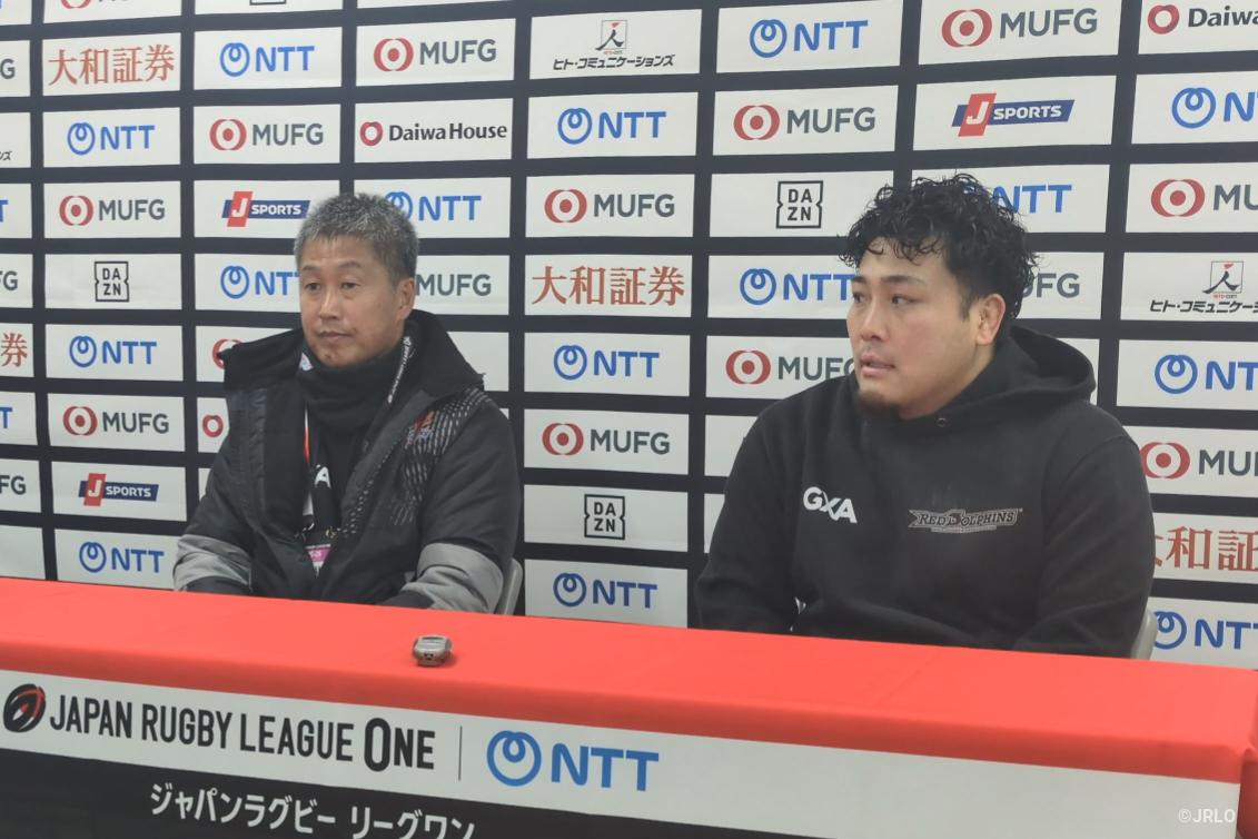 「本日はこのような環境でラグビーができたことを、本当にうれしく思います。苑田さん(苑田右二ヘッドコーチ)と同じで、ペナルティによって自分たちの首を絞めてしまう形になり、さまざまな場面で相手からプレッシャーを受けたことが、この結果につながったと感じています。また、相手に流れが傾いた際に、それをこちらに引き戻せなかった点もペナルティなどが理由になっていると思います。ただ、次の試合はすぐ来ますので、悪かった点はしっかり反省し、切り替えて準備していきたいと思います。本日はありがとうございました」