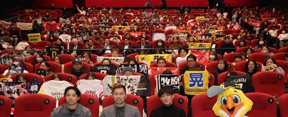 ソフトバンク中村晃外野手(36)、牧原大成内野手(33)、川瀬晃内野手(28)が17日、福岡市内の映画館で行われた球団製…