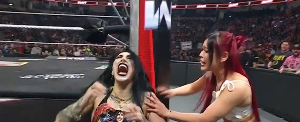 ミストを被弾したリアは顔面蒼白で怒りを滲ませ、アスカとの直接対決を直訴。その一方で、カブキ・ウォリアーズが手段を選ばない執念を持って“RHIYO”に再び宣戦布告し、年明け1月5日(日本時間6日)のタッグ王座戦「リア・リプリー&イヨ・スカイ vs カブキ・ウォリアーズ」へ向けた強烈な布石になった。(ABEMA/WWE『RAW』)