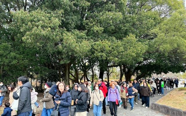 歩いて健康づくりをするイベント「明治安田Jリーグウォーキング」が13日、福岡市中央区であり、約800人が参加した。大濠公園や舞鶴公園を巡る4キロほどのコースを約1時間かけて歩いた。