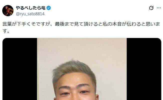 竜は16日深夜に「世間を騒がせてしまって申し訳ないと思っていて」などと現状を語る、6分弱の動画をアップ。18日正午時点で約1000件のコメントが届いている。