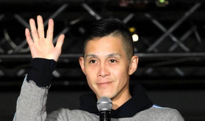 住之江ボートの中央ホールで、静岡支部の強豪レーサー・菊地孝平(47)=静岡・82期・A1=がトークショーを開催した。