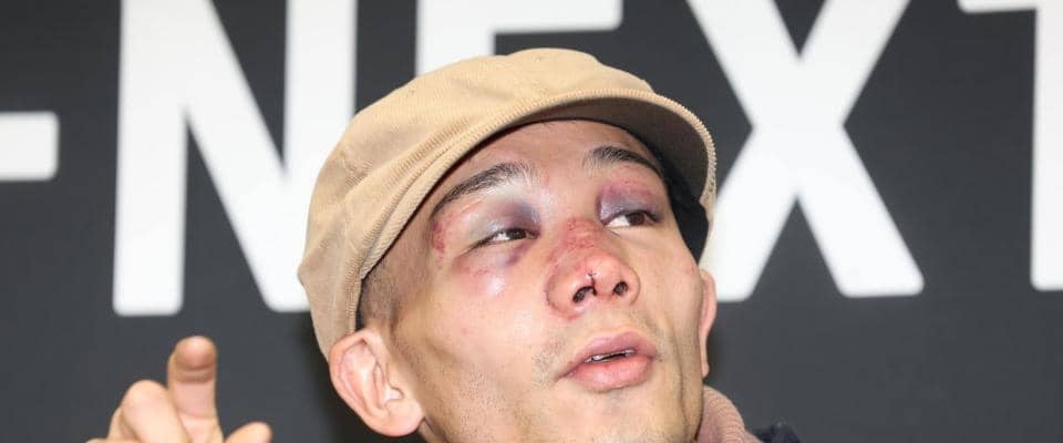崩壊した顔面が前夜の激闘ぶりを物語った。堤は鼻を大きく赤く腫らし、両目も腫れた痛々しい姿で登場し、「本当はサングラスを掛けたいが、鼻に負担が掛かるからしないでと言われて、悲しい姿で会見します」と苦笑い。朝から長時間の治療を受けたものの、痛み止めが切れたとあって「めっちゃ痛い」と顔をしかめた。会見の途中には中断して異例の服薬タイムが設けられ、さらに終盤には鼻の右の穴から鮮血がだらりと流れるなど、壮絶なダメージをかいま見せたが、「ノニト・ドネアと戦ったことは誇りで財産になる」とうなずいた。