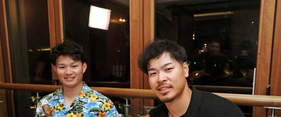 本場のステーキ店「ウルフギャング」で肉を頰張る。佐藤輝は店員の英語をあっさり聞き取り、弟分の森下に通訳してあげていた。ハワイでも異様なオーラを漂わせるが、V旅行前にはMLBのスターと共演していた。「ムーキーと。ムーキー・ベッツと何日間はやりましたね」。テーマは守備。収穫いっぱいの5日間だった。