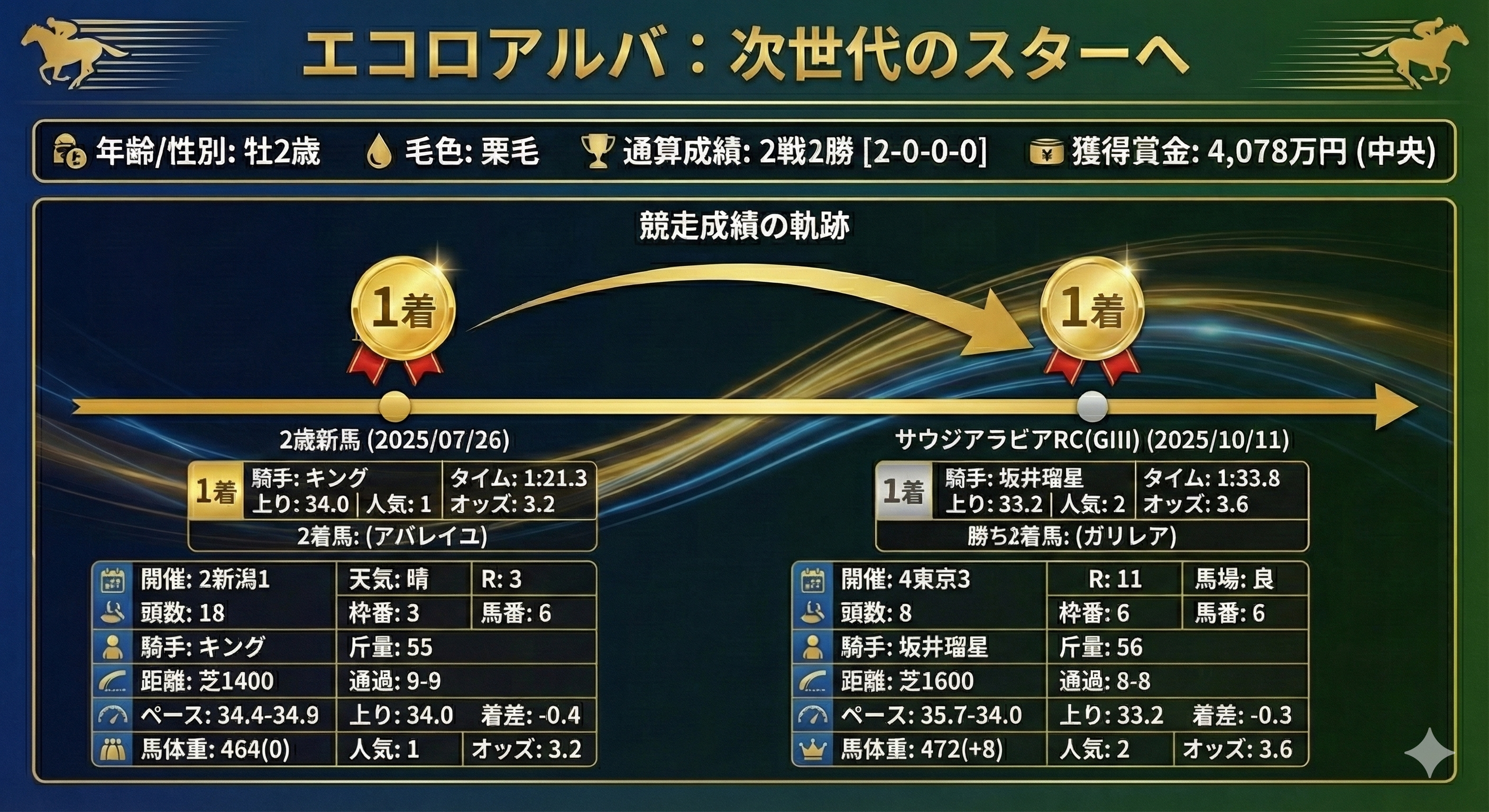 本記事では、出走各馬の追い切りを診断し、高評価の有力馬や穴馬をピックアップ。ここでは「エコロアルバ」を取り上げる。