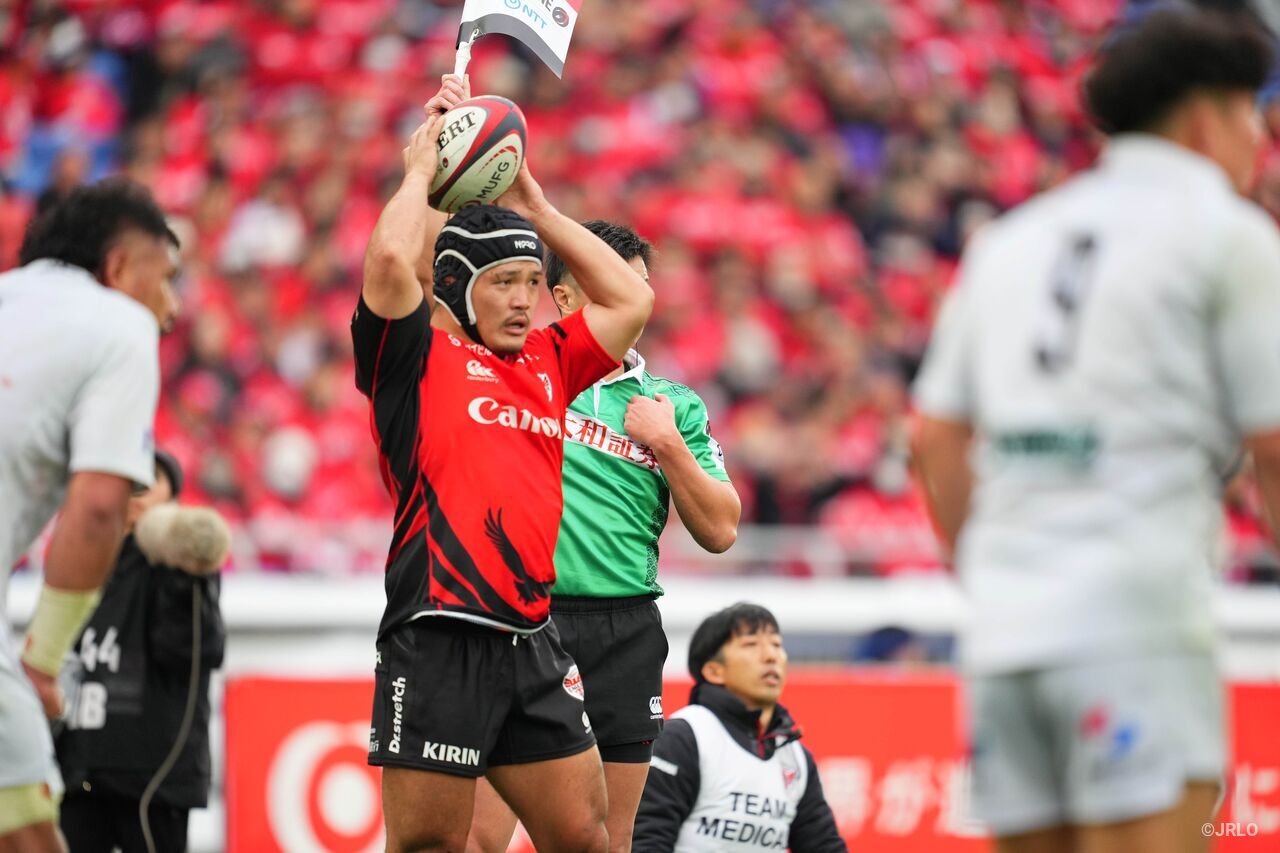 フッカーで先発予定の庭井祐輔にとって、相模原DB戦は節目となる100キャップ到達試合(トップリーグ、リーグワン通算)。もっとも本人は「相模原DB戦に出ないことにはまだ99キャップ」と慎重な姿勢を崩さず。また「仮に出たとて、良い仕事をしないと意味はない」と語気を強める。その庭井が相模原DB戦で目指す理想的な良い仕事とは──。