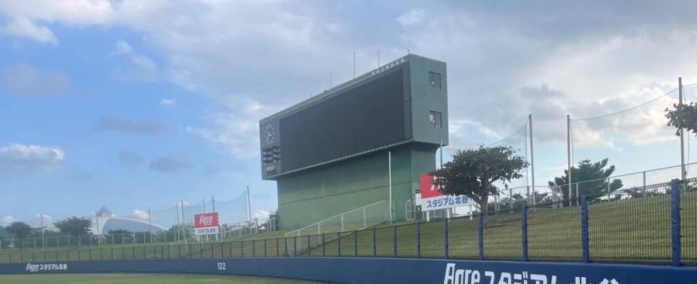 中日キャンプ地、沖縄・北谷町のメイン球場「アグレスタジアム」のフェンス改修工事が19日無事終了した。