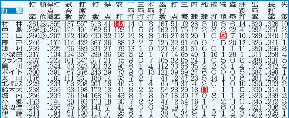 プロ野球の快記録や珍しい記録からシーズンを振り返る「データで見る2025ペナント」。プロ野球を球団別に連載します。第5回は楽天編。2025年ペナントの楽天打撃全成績を一覧でまとめました。