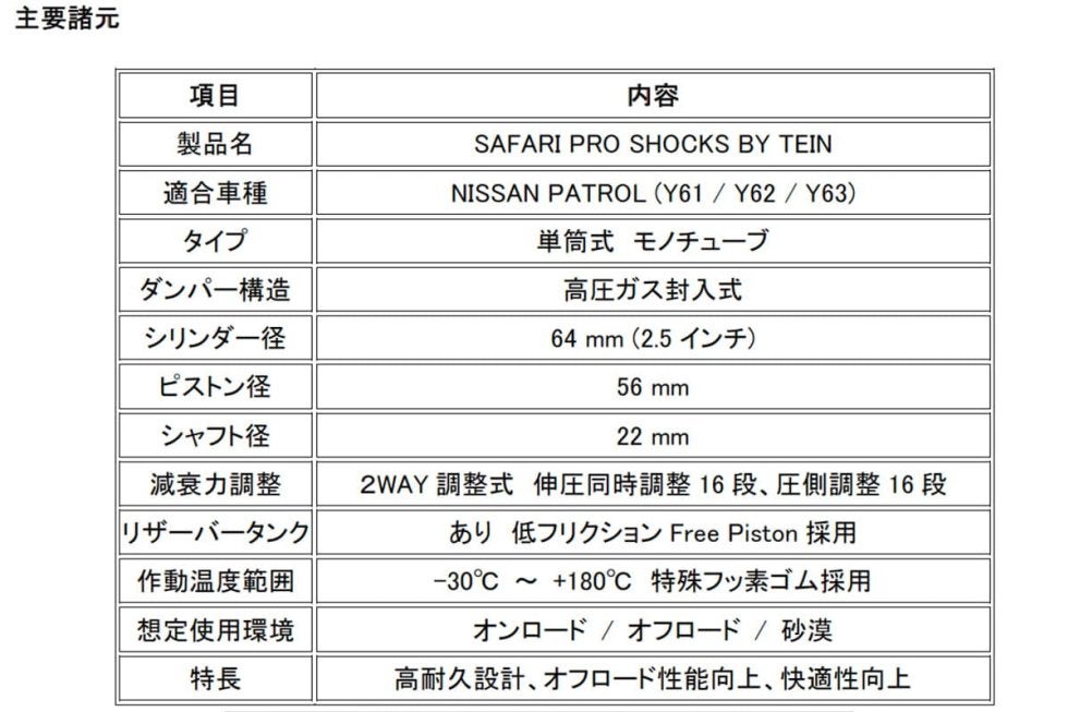 なお、日産パトロールは、27年度に07年以来となる日本市場に再投入が予定されており、テインも日本のオフロードカスタマー向けに世界市場で培った高性能4x4ダンパーを提供致していくとしている。