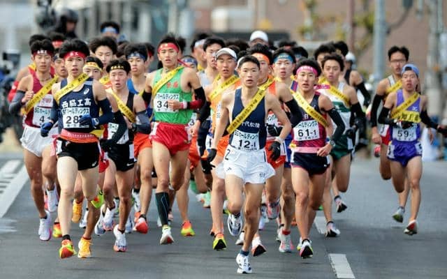 前回大会で1区の先頭集団を走る選手たち=2024年12月22日、代表撮影