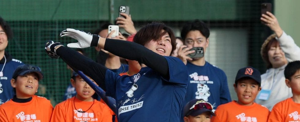 今季1軍で4本塁打ながら、「0本で恥ずかしかった」と本人は苦笑い。見守ったOBから「恭大、帰るぞ」とあきれられながら5スイング中、最初と最後の2本が、無事にスタンドイン。「皆さんが打っていたので。もっと頑張りたい」と気持ちを新たにした。