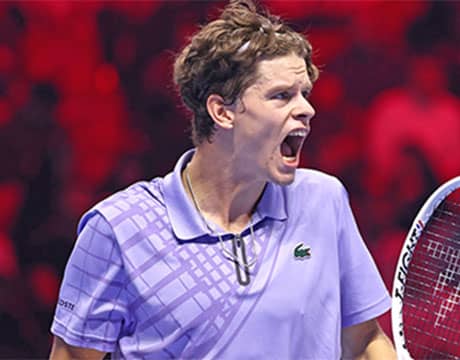 男子テニスの20歳以下最終戦Next Gen ATPファイナルズ(サウジアラビア/ジッダ、ハード)は日本時間21日(現地20日)、シングルス準決勝が行われ、第2シードのA・ブロックス(ベルギー)が第5シードのN・ブドコフ ケア(ノルウェー)を4-3 (7-4), 4-3 (10-8), 4-2のストレートで下し初出場で決勝進出を果たすとともに、全勝優勝に王手をかけた。