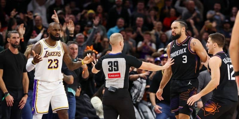 激しい試合展開以上に注目を浴び物議を醸しているのが、サンズの“悪役”ディロン・ブルックスの行動である。サンズが5点のリードを保っていた第4クォーター残り41秒、3ポイントを放ったステフィン・カリーに対しシュートチェックに飛んだブルックスはカリーの腹部に向かって腕を振り当てた。ブルックスの腕は肋骨付近にあたりカリーはその場でコートに倒れ込み、ブルックスにフレイグラント・ファウルが宣告された。